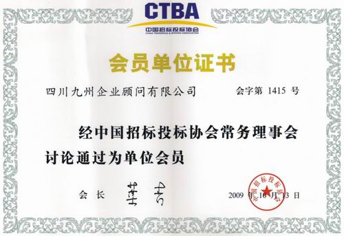 中国招标投标协会会员单位证书