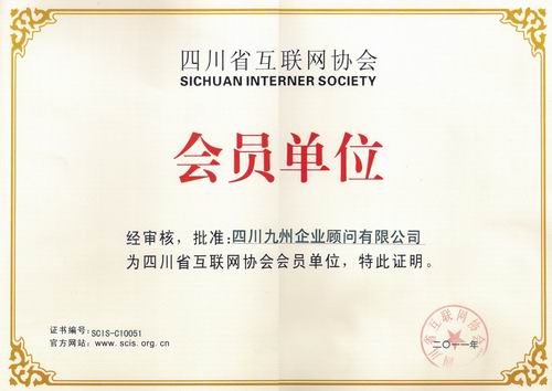 四川省互联网协会会员单位证书