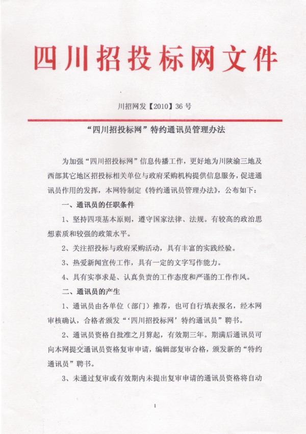 “四川招投标网”特约通讯员管理办法...