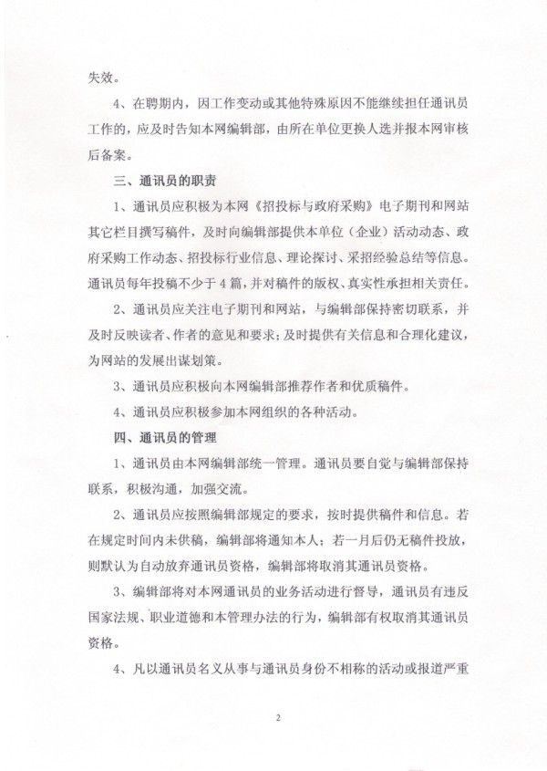 “四川招投标网”特约通讯员管理办法